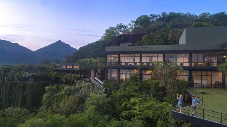 Heritance Kandalama offers 152 rooms and suites, each designed to blend seamlessly with the natural surroundings. The hotel features three restaurants serving international and Sri Lankan cuisine, a spa, an infinity pool, and a gym. Its location near the cultural triangle of Sri Lanka provides easy access to UNESCO World Heritage Sites such as Sigiriya, Dambulla Cave Temple, and Polonnaruwa. Heritance Kandalama is a luxury five-star hotel located in Dambulla, Sri Lanka, approximately 12 km from the town center. Designed by renowned architect Geoffrey Bawa, the hotel is set amidst 211 acres of protected forest, offering guests a unique blend of luxury and nature.